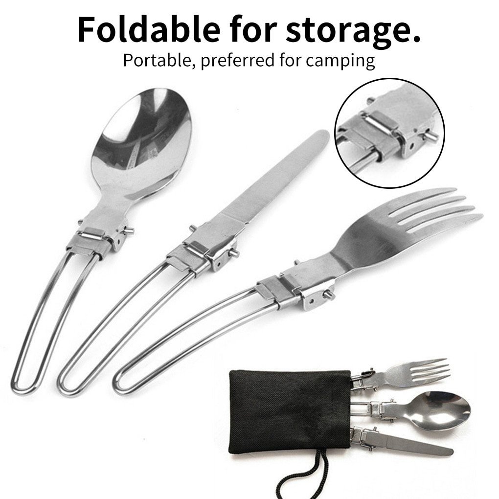 Home > 1pcs Camping Fork Spoon Outdoor Tableware Foldable Ultralight Stainless Steel Set Of Dishes For Camping Outdoor Cooking